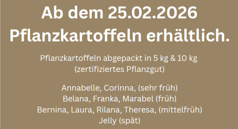 Aktuelles: Pflanzkartoffeln ab Ende Februar erhältlich.